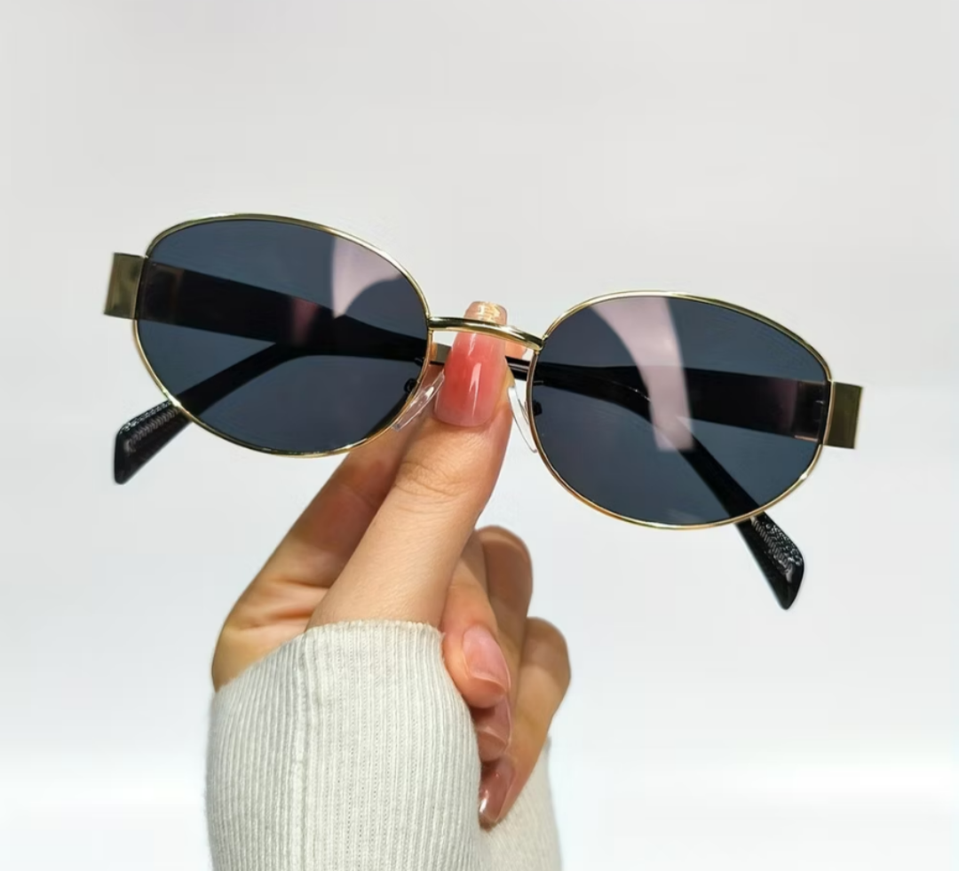 Óculos oval dourado com proteção solar UV 400
